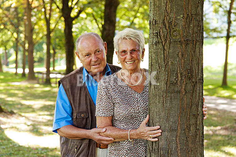 Beschreibung Älteres Senioren Ehepaar ist verliebt. Mann überreicht eine Rose.