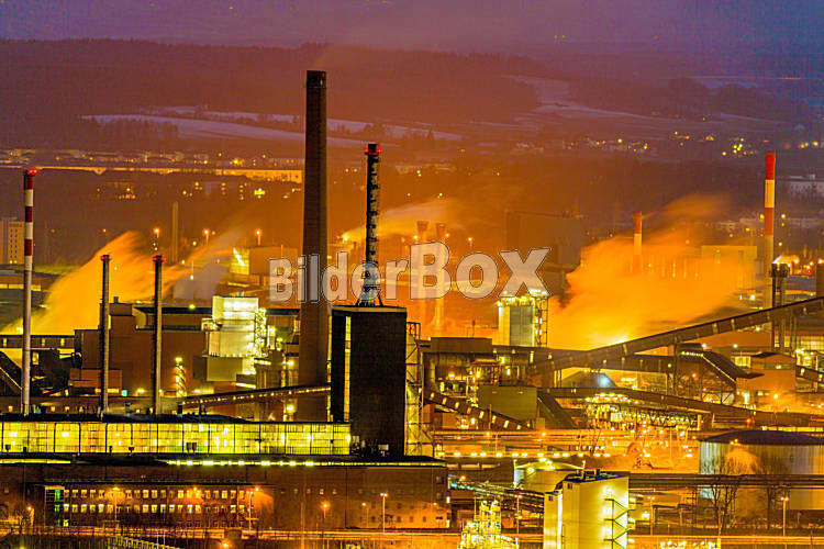 Beschreibung Österreich, Oberösterreich, Linz. Nachtaufnahme des Industriegebietes