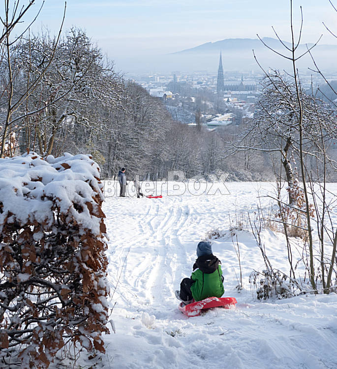 Beschreibung Im Winter ist auch rodeln in der Stadt möglich. Rodelwiese am Freinberg.