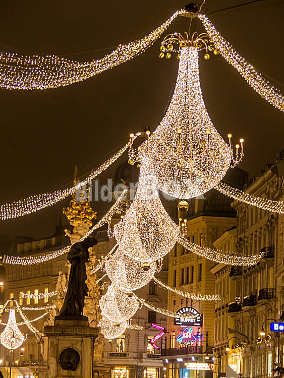 Beschreibung Österreich, Wien. Die Beleuchtung zu Weihnachten am Graben in Wien