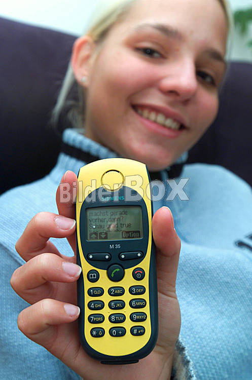 Beschreibung Junges Maedchen mit SMS MItteilung Copyright (2002) by BilderBox.com, Erwin Wodicka, A-4062 Thening. Verwendung nur nach unseren AGB: www.bilderbox.com/agb.html ( in an einer einem auf als + und...