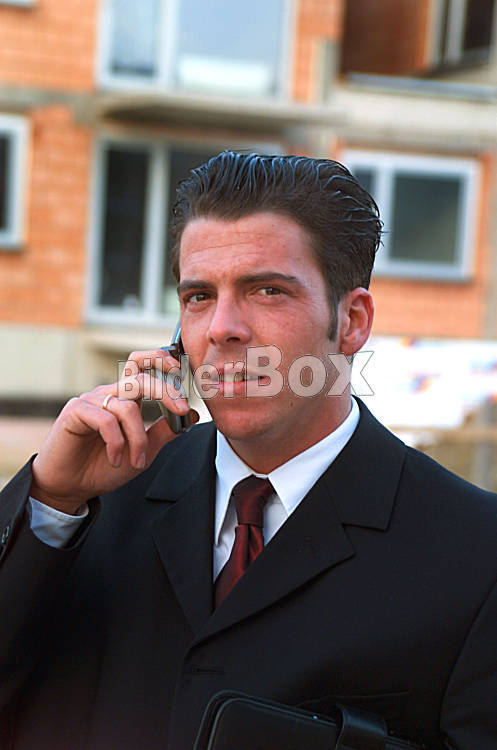 Beschreibung Mann mit Handy auf einer Baustelle Copyright (2002) by BilderBox.com, Erwin Wodicka, A-4062 Thening. Verwendung nur nach unseren AGB: www.bilderbox.com/agb.html ( in an einer einem auf als + und...