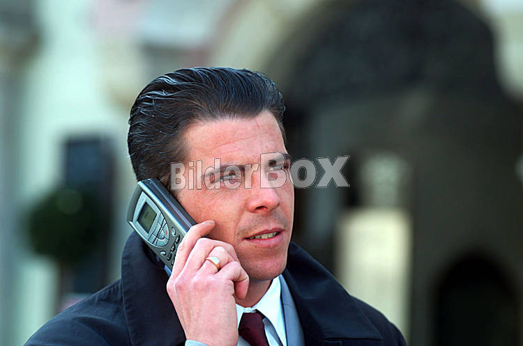 Beschreibung Mann beim telefonieren mit einem Handy Copyright (2002) by BilderBox.com, Erwin Wodicka, A-4062 Thening. Verwendung nur nach unseren AGB: www.bilderbox.com/agb.html ( in an einer einem auf als +...