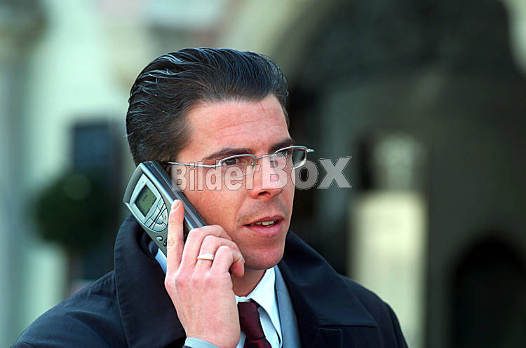 Beschreibung Mann beim telefonieren mit einem Handy Copyright (2002) by BilderBox.com, Erwin Wodicka, A-4062 Thening. Verwendung nur nach unseren AGB: www.bilderbox.com/agb.html ( in an einer einem auf als +...