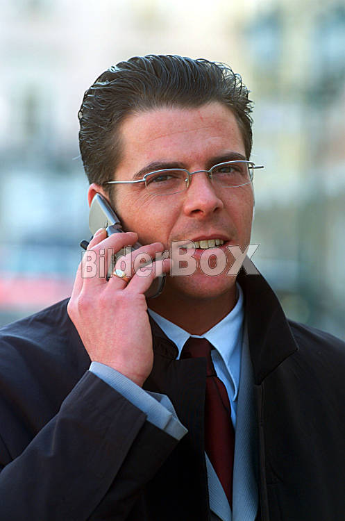 Beschreibung Mann beim telefonieren mit einem Handy Copyright (2002) by BilderBox.com, Erwin Wodicka, A-4062 Thening. Verwendung nur nach unseren AGB: www.bilderbox.com/agb.html ( in an einer einem auf als +...