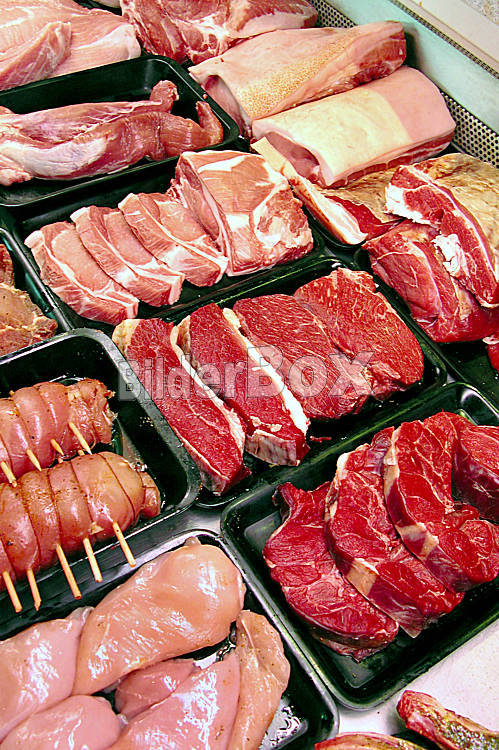 Beschreibung Fleischtheke [ (c) www.BilderBox.com, Erwin Wodicka, A-4063 Breitbrunn, Tel. +43 676 5103 678. Verwendung nur gegen HONORAR, BELEG, URHEBERVERMERK und den AGBŽs auf www.bilderbox.com ] Flesich...