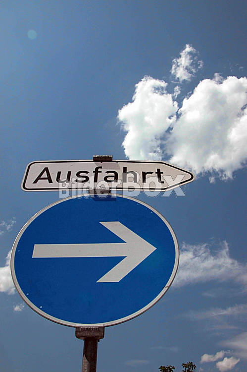 Beschreibung Schild Ausfahrt [ (c) www.BilderBox.com, Erwin Wodicka, A-4063 Breitbrunn, Tel. +43 676 5103 678. Verwendung nur gegen HONORAR, BELEG, URHEBERVERMERK und den AGBŽs auf www.bilderbox.com ]...
