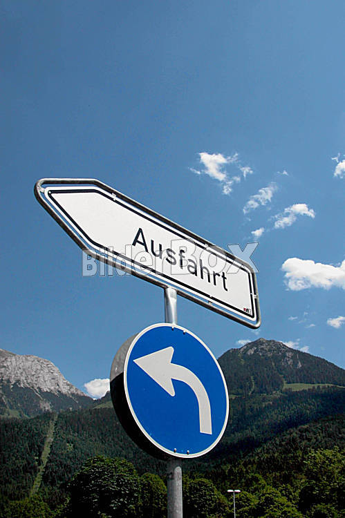 Beschreibung Schild Ausfahrt [ (c) www.BilderBox.com, Erwin Wodicka, A-4063 Breitbrunn, Tel. +43 676 5103 678. Verwendung nur gegen HONORAR, BELEG, URHEBERVERMERK und den AGBŽs auf www.bilderbox.com ]...