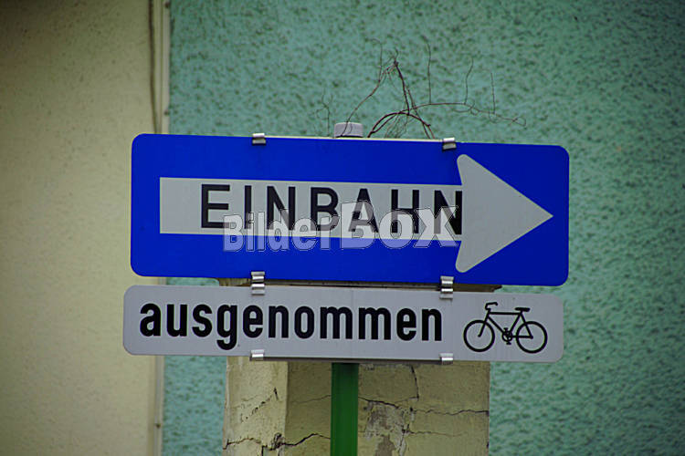 Beschreibung Einbahnstrasse mit entgegenkommendem Radfahrweg [ (c) www.BilderBox.com, Erwin Wodicka, A-4063 Breitbrunn, Tel. +43 676 5103 678. Verwendung nur gegen HONORAR, BELEG, URHEBERVERMERK und den AGBŽs...