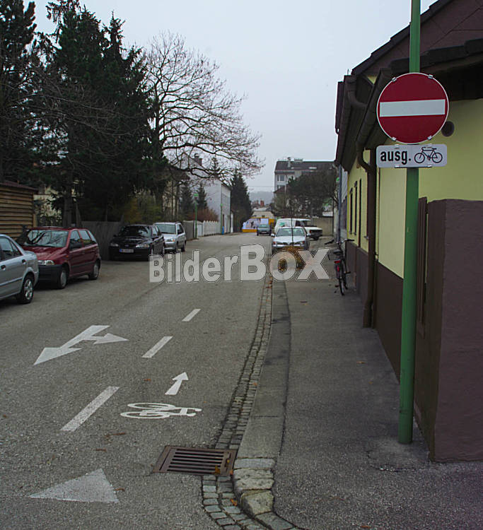 Beschreibung Einbahnstrasse mit entgegenkommendem Radfahrweg [ (c) www.BilderBox.com, Erwin Wodicka, A-4063 Breitbrunn, Tel. +43 676 5103 678. Verwendung nur gegen HONORAR, BELEG, URHEBERVERMERK und den AGBŽs...