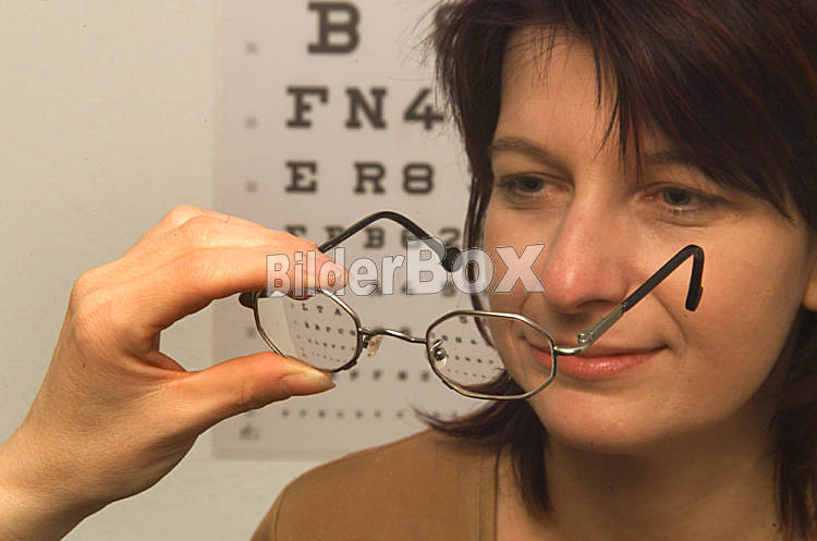 Beschreibung Frau wird eine Brille angepasst [ (c) www.BilderBox.com, Erwin Wodicka, A-4063 Breitbrunn, Tel. +43 676 5103 678. Verwendung nur gegen HONORAR, BELEG, URHEBERVERMERK und den AGBŽs auf...
