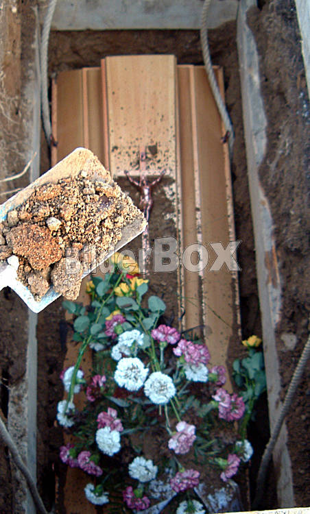 Beschreibung Sarg mit Schaufel und Erde [ (c) www.BilderBox.com, Erwin Wodicka, A-4063 Breitbrunn, Tel. +43 676 5103 678. Verwendung nur gegen HONORAR, BELEG, URHEBERVERMERK und den AGBŽs auf www.bilderbox.com...