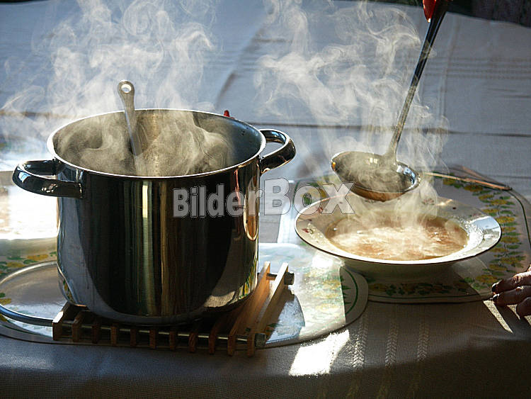 Beschreibung Dampfende Suppe [ (c) www.BilderBox.com, Erwin Wodicka, A-4063 Breitbrunn, Tel. +43 676 5103 678. Verwendung nur gegen HONORAR, BELEG, URHEBERVERMERK und den AGBŽs auf www.bilderbox.com ] in an am...