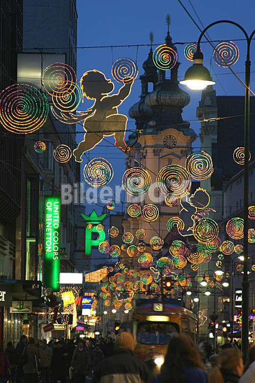 Beschreibung Weihnachtsbeleuchtung (Linz - OOe) [ (c) www.BilderBox.com, Erwin Wodicka, A-4063 Breitbrunn, Tel. +43 676 5103 678. Verwendung nur gegen HONORAR, BELEG, URHEBERVERMERK und den AGBs auf...