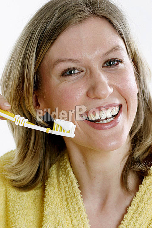 Beschreibung Frau mit Zahnbuerste [ (c) www.BilderBox.com, Erwin Wodicka, A-4063 Breitbrunn, Tel. +43 676 5103 678. Verwendung nur gegen HONORAR, BELEG, URHEBERVERMERK und den AGBs auf www.bilderbox.com ] in an...