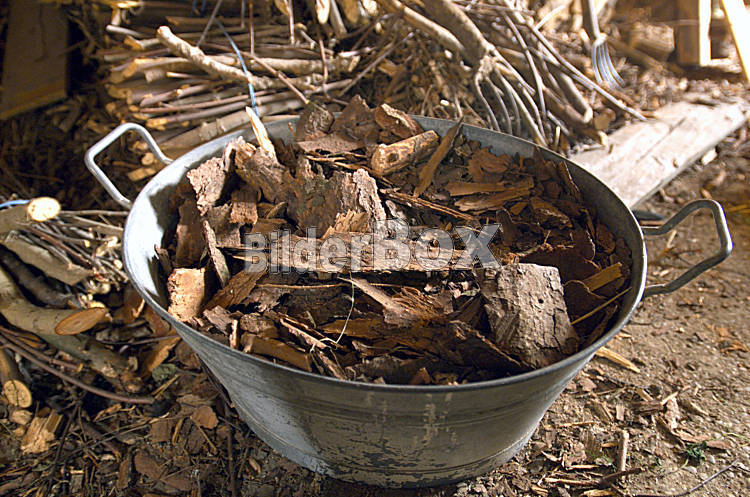 Beschreibung Blechwanne mit Holzrinde [ (c) www.BilderBox.com, Erwin Wodicka, A-4063 Breitbrunn, Tel. +43 676 5103 678. Verwendung nur gegen HONORAR, BELEG, URHEBERVERMERK und den AGBs auf www.bilderbox.com ]...