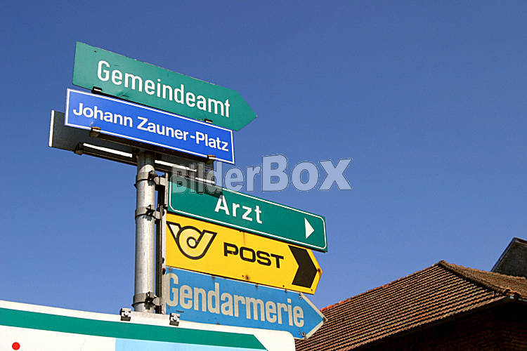 Beschreibung Schilderwald [ (c) www.BilderBox.com, Erwin Wodicka, A-4063 Breitbrunn, Tel. +43 676 5103 678. Verwendung nur gegen HONORAR, BELEG, URHEBERVERMERK und den AGBs auf www.bilderbox.com ] in an am um...