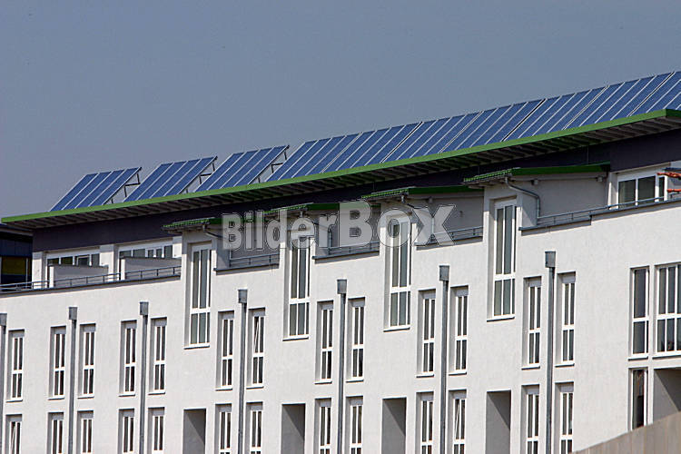 Beschreibung Neubauwohnungen mit Sonnenkollektoren [ (c) www.BilderBox.com, Erwin Wodicka, A-4063 Breitbrunn, Tel. + 43 676 5103 678. Verwendung nur gegen HONORAR, BELEG, URHEBERVERMERK und den AGBs auf...