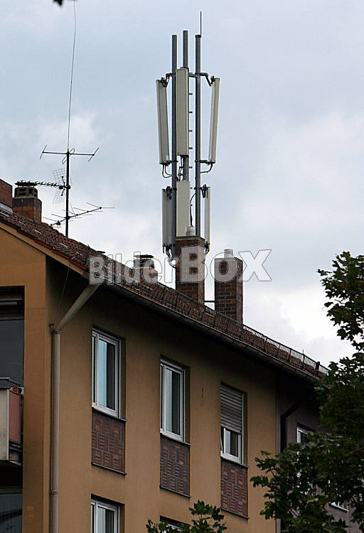 Beschreibung Deutscher Mobilfunksender auf einem Hausdach in Nuernberg [ (c) www.BilderBox.com,Erwin Wodicka,Siedlerzeile 3,A4062 Thening,Tel.+43 676 5103 678. Verwendung nur gegen HONORAR, BELEG,...