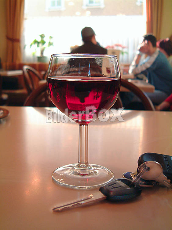 Beschreibung Weinglas in einem Gasthaus mit Autoschlüssel Copyright (2002) by BilderBox.com, Erwin Wodicka, A-4062 Thening. Verwendung nur nach unseren AGB: www.bilderbox.com/agb.html ( in an einer einem auf...