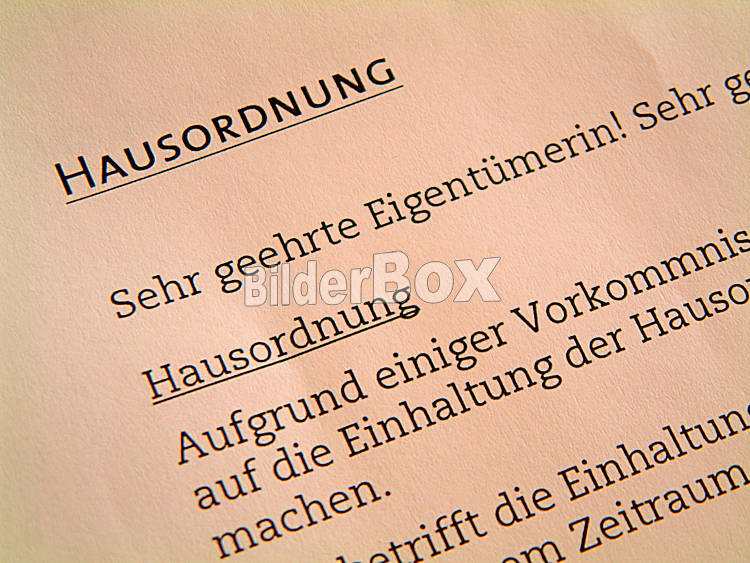 Beschreibung Brief mit der Hausordnung an einen Wohnungsmieter Copyright (2002) by BilderBox.com, Erwin Wodicka, A-4062 Thening. Verwendung nur nach unseren AGB: www.bilderbox.com/agb.html ( in an einer einem...