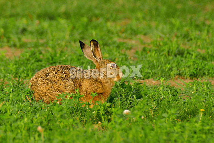 Beschreibung Feldhase auf einer Wiese [ (c) www.BilderBox.com,Erwin Wodicka,Siedlerzeile 3,A4062 Thening,Tel.+43 676 5103 678. Verwendung nur gegen HONORAR, BELEG, URHEBERVERMERK und den AGBs auf bilderbox.com...
