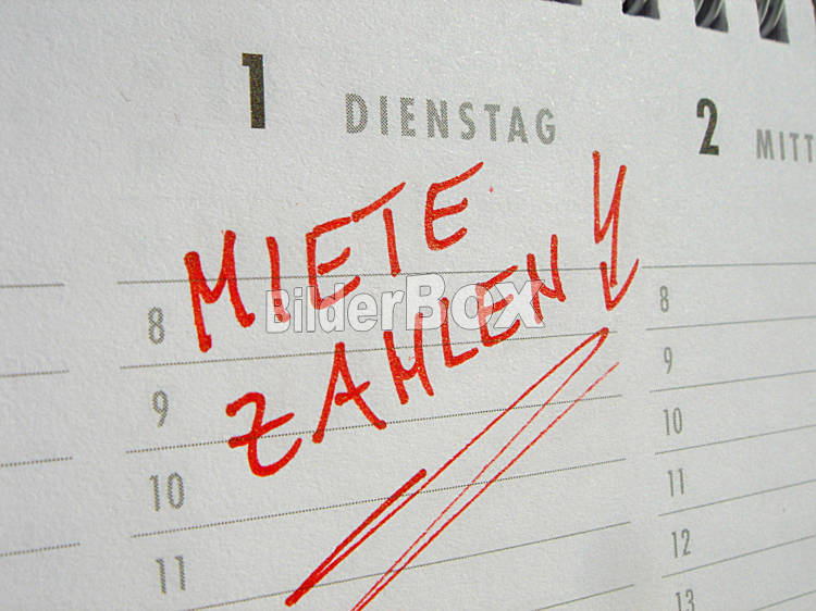 Beschreibung Miete zahlen - Eintrag in einen Kalender [ (c) www.BilderBox.com,Erwin Wodicka,Siedlerzeile 3,A4062 Thening,Tel.+43 676 5103 678. Verwendung nur gegen HONORAR, BELEG, URHEBERVERMERK und den AGBs...
