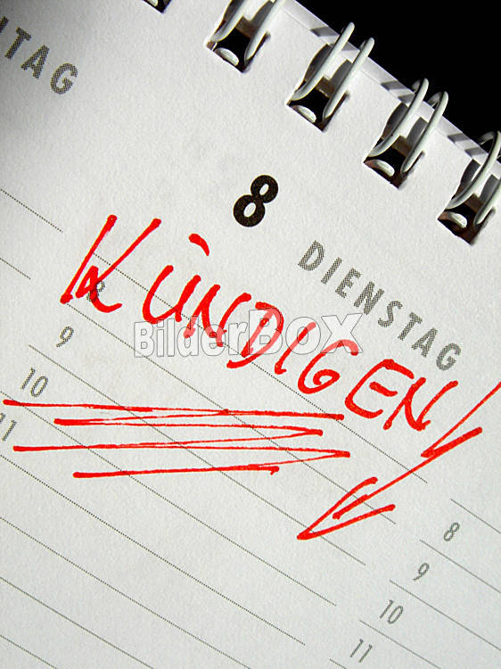 Beschreibung Kuendigen - Eintrag in einen Kalender [ (c) www.BilderBox.com,Erwin Wodicka,Siedlerzeile 3,A4062 Thening,Tel.+43 676 5103 678. Verwendung nur gegen HONORAR, BELEG, URHEBERVERMERK und den AGBs auf...