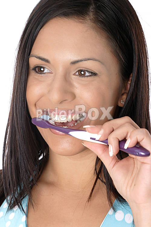 Beschreibung Frau beim Zaehneputzen [ (c) www.BilderBox.com,Erwin Wodicka,Siedlerzeile 3,A4062 Thening,Tel.+43 676 5103 678. Verwendung nur gegen HONORAR, BELEG, URHEBERVERMERK und den AGBs auf bilderbox.com ]...