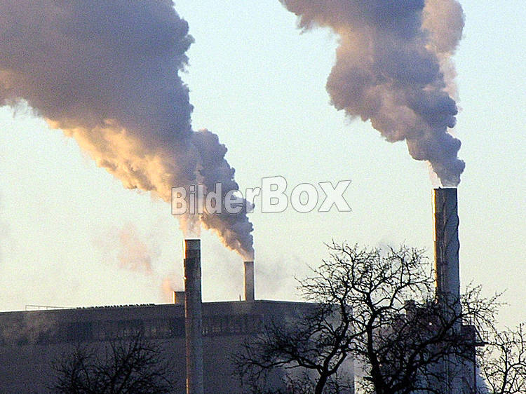 Beschreibung Rauchende Schlote / Smoking chimneys [ [ (c) www.BilderBox.com,Erwin Wodicka,Siedlerzeile 3,A4062 Thening,Tel.+43 676 5103 678. Verwendung nur gegen HONORAR, BELEG, URHEBERVERMERK und den AGBs auf...