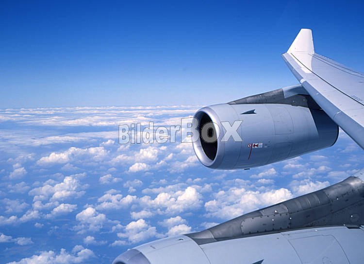 Beschreibung Flugzeug Triebwerk über den Wolken / Airplane engine over the clouds [ (c) www.BilderBox.com,Erwin Wodicka,Siedlerzeile 3,A4062 Thening,Tel.+43 676 5103 678. Verwendung nur gegen HONORAR, BELEG,...