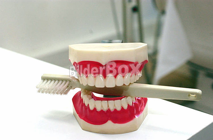 Beschreibung Zahnersatz mit Zahnbuerste / Dentures with toothbrush [ (c) www.BilderBox.com,Erwin Wodicka,Siedlerzeile 3,A4062 Thening,Tel.+43 676 5103 678. Verwendung nur gegen HONORAR, BELEG, URHEBERVERMERK...