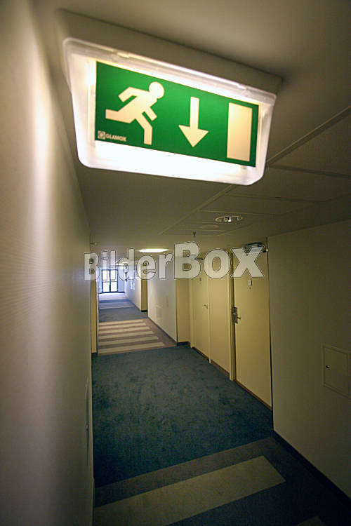 Beschreibung Notausgang in einem Hotel [ (c) www.BilderBox.com, Erwin Wodicka, Siedlerzeile 3, A-4062 Thening, Tel. + 43 676 5103678.Verwendung nur gegen HONORAR, BELEG,URHEBERVERMERK und den AGBs auf...