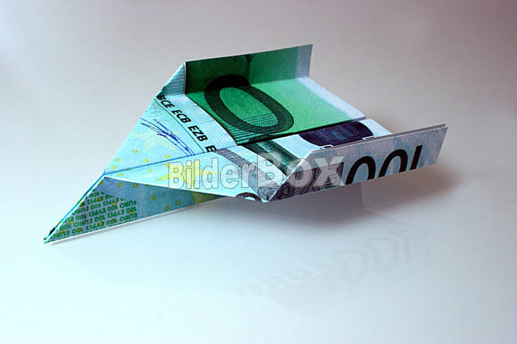 Beschreibung 100 Euro Papierflieger [ (c) www.BilderBox.com, Erwin Wodicka, Siedlerzeile 3, A-4062 Thening, Tel. + 43 676 5103678.Verwendung nur gegen HONORAR, BELEG,URHEBERVERMERK und den AGBs auf...