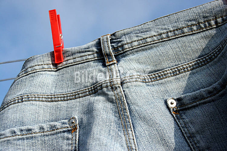 Beschreibung Jean mit Waescheklammer [ (c) www.BilderBox.com, Erwin Wodicka, Siedlerzeile 3, A-4062 Thening, Tel. + 43 676 5103678.Verwendung nur gegen HONORAR, BELEG,URHEBERVERMERK und den AGBs auf...