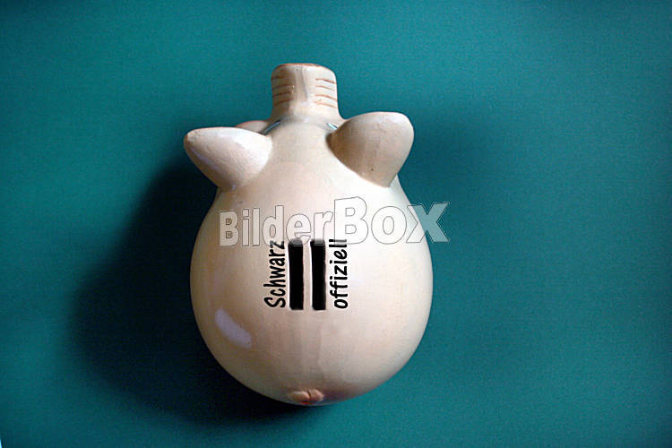 Beschreibung Sparschwein Schwarzgeld [ (c) www.BilderBox.com, Erwin Wodicka, Siedlerzeile 3, A-4062 Thening, Tel. + 43 676 5103678.Verwendung nur gegen HONORAR, BELEG,URHEBERVERMERK und den AGBs auf...