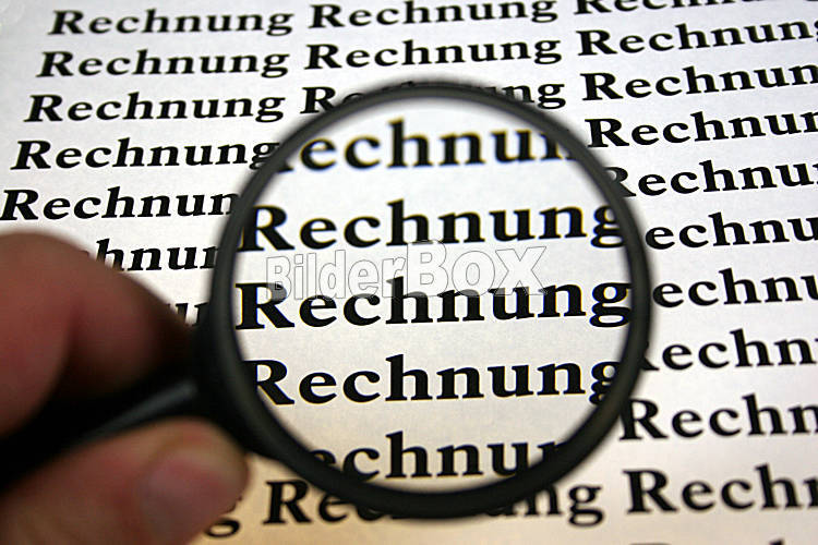 Beschreibung Rechnung unter der Lupe [ (c) www.BilderBox.com, Erwin Wodicka, Siedlerzeile 3, A-4062 Thening, Tel. + 43 676 5103678.Verwendung nur gegen HONORAR, BELEG,URHEBERVERMERK und den AGBs auf...