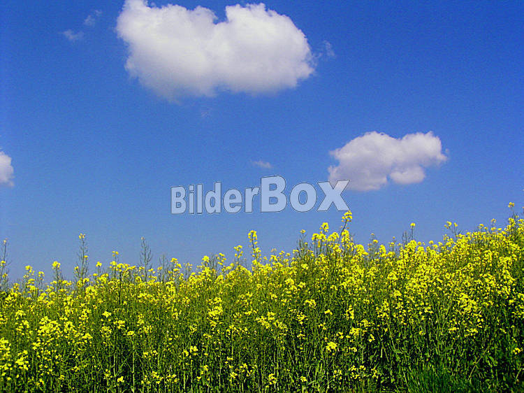 Beschreibung Rapsfeld mit Schaefchenwolken [ (c) www.BilderBox.com, Erwin Wodicka, Siedlerzeile 3, A-4062 Thening, Tel. + 43 676 5103678.Verwendung nur gegen HONORAR, BELEG,URHEBERVERMERK und den AGBs auf...
