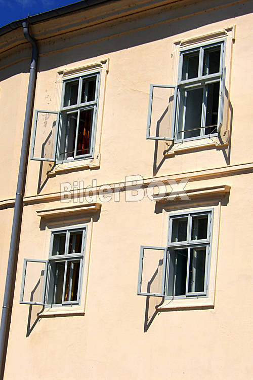 Beschreibung Fensterfront eines Altbaus [ (c) www.BilderBox.com, Erwin Wodicka, Siedlerzeile 3, A-4062 Thening, Tel. + 43 676 5103678.Verwendung nur gegen HONORAR, BELEG,URHEBERVERMERK und den AGBs auf...
