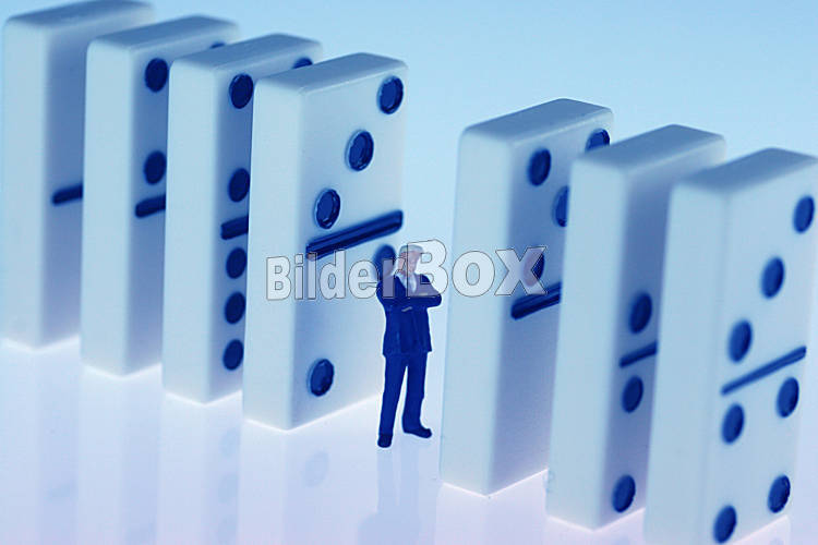 Beschreibung Mann zwischen den Dominosteinen [ (c) www.BilderBox.com, Erwin Wodicka, Siedlerzeile 3, A-4062 Thening, Tel. + 43 676 5103678.Verwendung nur gegen HONORAR, BELEG,URHEBERVERMERK und den AGBs auf...