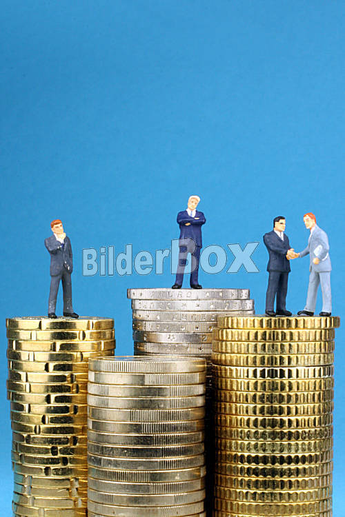Beschreibung Geschaeftsleute und Geldmuenzen [ (c) www.BilderBox.com, Erwin Wodicka, Siedlerzeile 3, A-4062 Thening, Tel. + 43 676 5103678.Verwendung nur gegen HONORAR, BELEG,URHEBERVERMERK und den AGBs auf...