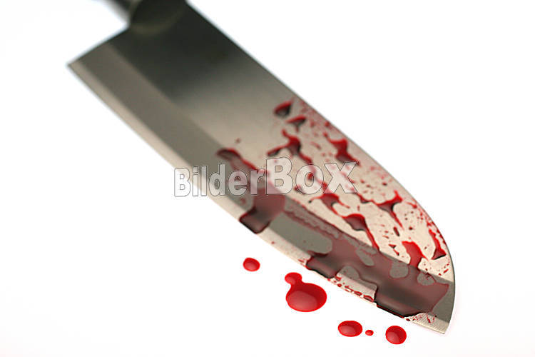 Beschreibung Kuechenmesser mit Blut [ (c) www.BilderBox.com, Erwin Wodicka, Siedlerzeile 3, A-4062 Thening, Tel. + 43 676 5103678.Verwendung nur gegen HONORAR, BELEG,URHEBERVERMERK und den AGBs auf...
