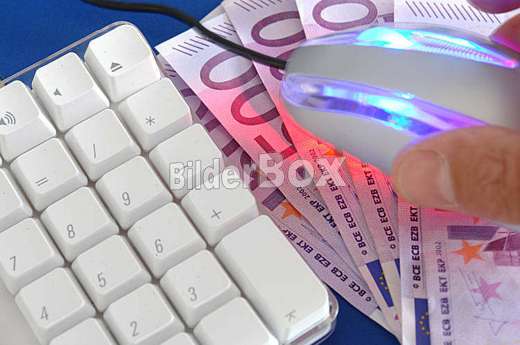 Beschreibung Euroscheine und Tastatur [ (c) www.BilderBox.com, Erwin Wodicka, Siedlerzeile 3, A-4062 Thening, Tel. + 43 676 5103678.Verwendung nur gegen HONORAR, BELEG,URHEBERVERMERK und den AGBs auf...
