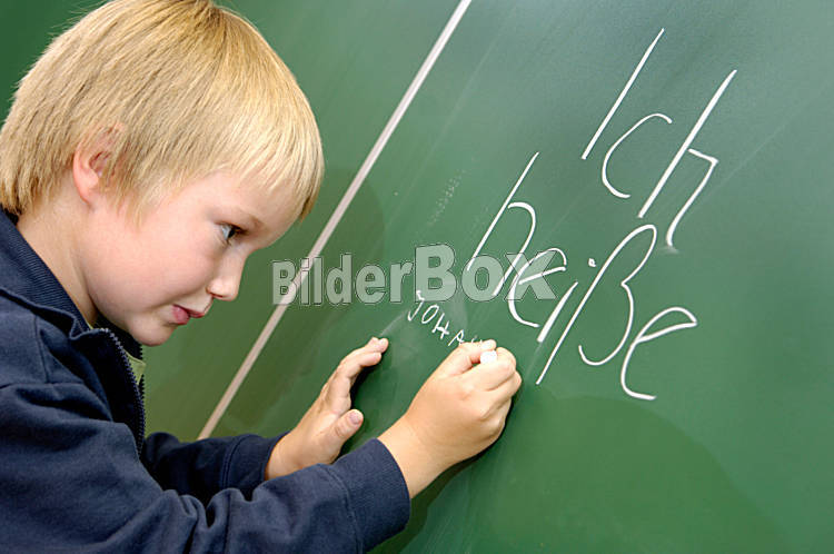 Beschreibung Junge an der Tafel [ (c) www.BilderBox.com, Erwin Wodicka, Siedlerzeile 3, A-4062 Thening, Tel. + 43 676 5103678.Verwendung nur gegen HONORAR, BELEG,URHEBERVERMERK und den AGBs auf...
