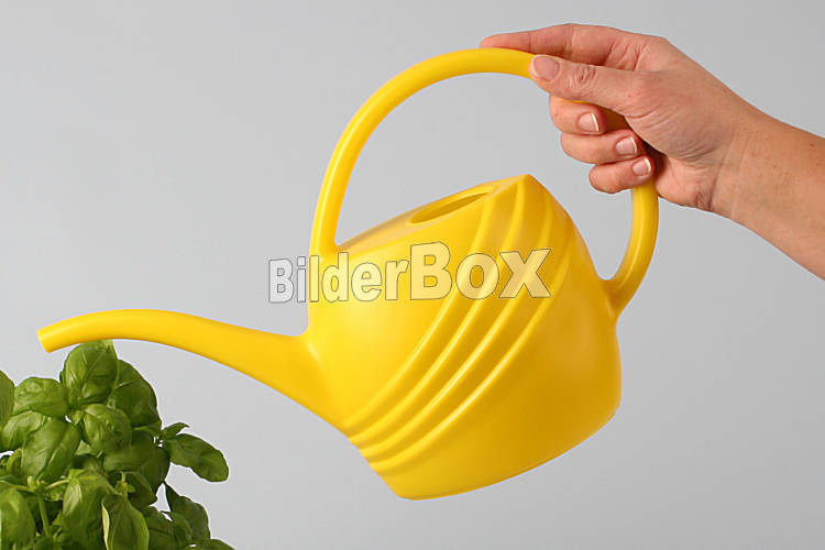 Beschreibung gelbe Giesskanne [ (c) www.BilderBox.com, Erwin Wodicka, Siedlerzeile 3, A-4062 Thening, Tel. + 43 676 5103678.Verwendung nur gegen HONORAR, BELEG,URHEBERVERMERK und den AGBs auf bilderbox.com](in...