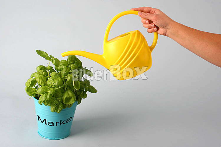 Beschreibung gelbe Giesskanne [ (c) www.BilderBox.com, Erwin Wodicka, Siedlerzeile 3, A-4062 Thening, Tel. + 43 676 5103678.Verwendung nur gegen HONORAR, BELEG,URHEBERVERMERK und den AGBs auf bilderbox.com](in...