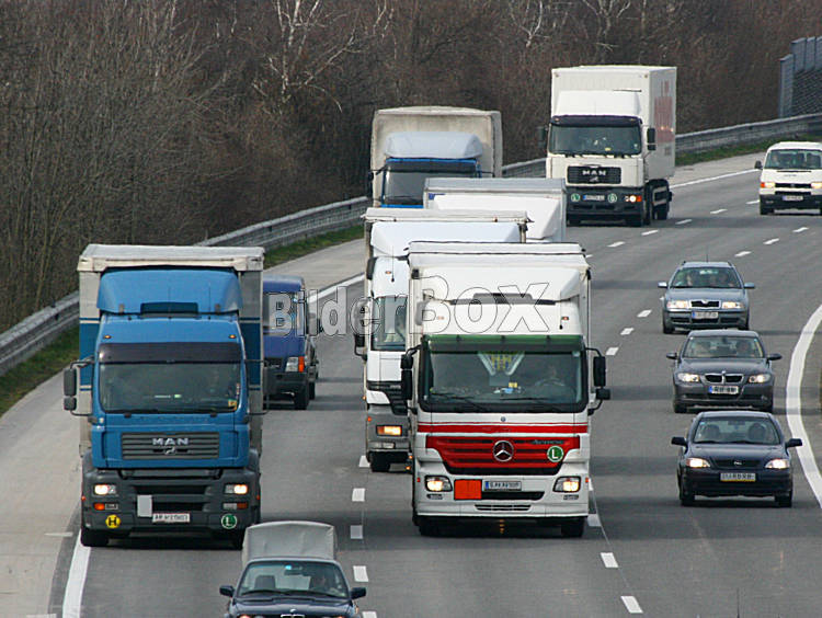 Beschreibung LKWs auf Autobahn [ NUR FUER REDAKTIONELLE VERWENDUNG! (c) www.BilderBox.com, Erwin Wodicka, Siedlerzeile 3, A-4062 Thening, Tel. + 43 676 5103678.Verwendung nur gegen HONORAR, BELEG,...