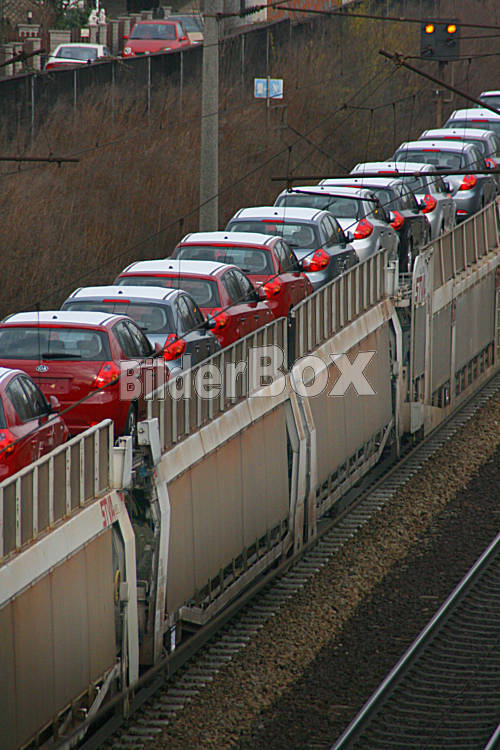 Beschreibung Autos auf einem Gueterzug [ (c) www.BilderBox.com, Erwin Wodicka, Siedlerzeile 3, A-4062 Thening, Tel. + 43 676 5103678.Verwendung nur gegen HONORAR, BELEG, URHEBERVERMERK nach AGBs auf...