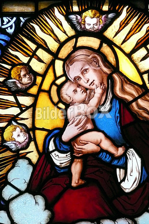 Beschreibung Deutschland, Passau, Marienfigur Glasfenster im Rathaus [ (c) www.BilderBox.com, Erwin Wodicka, Siedlerzeile 3, A-4062 Thening, Tel. + 43 676 5103678.Verwendung nur gegen HONORAR, BELEG,...