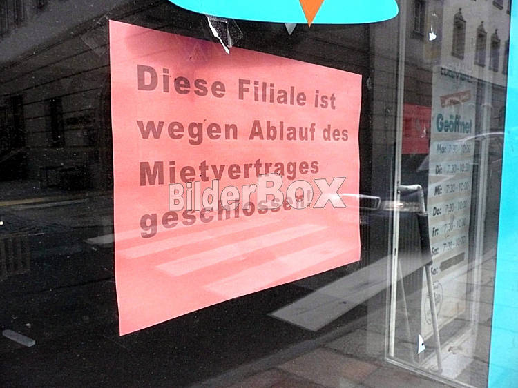 Beschreibung Geschäftsaufgabe wegen abgelaufenen Mietvertrages [ (c) www.BilderBox.com, Erwin Wodicka, Siedlerzeile 3, A-4062 Thening, Tel. + 43 676 5103678.Verwendung nur gegen HONORAR, BELEG, URHEBERVERMERK...